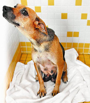 台湾动物紧急救援小组去年12月4日接获小学老师林久渊求救信,指校园中最近出现一只流浪母狗,刚生了5只小狗,母狗左前腿及左后腿疑似瘫痪,但为哺育照顾初生幼犬,仍勉力在地上爬行,令人看了不忍。