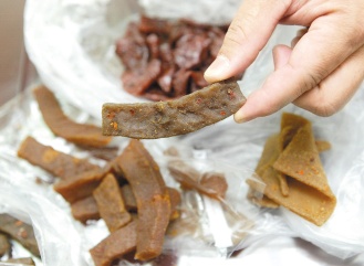 另有四件年糕、草仔粿被验出过量防腐剂,“唯丰肉松”的猪肉干含过量防腐剂,制造商在云林县北港镇。