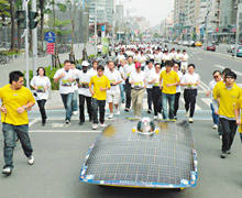马拉松赛将于28日上午7时开跑,吸引全球198位选手参赛,总报名人数约2万人。造势队伍昨天从高雄巨蛋户外广场跑至捷运凹仔底站,小试身手跑了约1.3公里,并请来高校研发的太阳能车阿波罗号担任前导车。