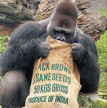 资料显示,公成年金刚猩猩背上有象征年长的银白长毛,有人称之“银背”。性情温和、重视家庭,生气时会搥胸吼叫。幼年期的搥胸动作多为表达满足之意,成年时的搥胸意义复杂,有时用来警告入侵者。