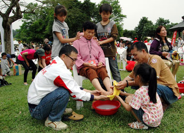 以发扬社会伦理、提倡孝道与尊师为宗旨的宜兰县“孝亲尊师联盟”,从前年起于母亲节都会举办亲子洗脚情活动。2010年活动主题为“父母恩万世情,甲父母洗脚”。