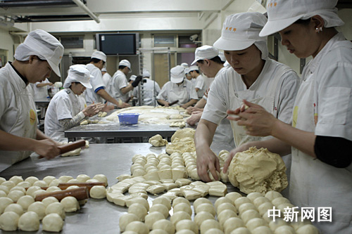 走进詹益恭负责的阿明师老店的工厂里,记者了解到太阳饼制作的全过程,也终于知道太阳饼之所以在味道和口感上与众不同的“秘诀”。太阳饼制作共五道工序。在按照传统配方选取中筋面粉,低筋骨后,要将面鞣到合适的软硬度。接着分成鸡蛋大小的面团后加入“酥”,这个所谓的“酥”是让面皮酥软的关键材料。接着搟皮要层次够,且力道均匀,裹入内馅的牛舌状面皮厚度需非常平均。在包入麦芽糖馅的时候完全依靠师傅的经验和细心。包多包少,手法的生熟都会影响到最后出炉成饼的质量。最后烘烤的时候,根据饼的大小,调节温度和时间。时间上的控制直接影响到麦芽馅的沸腾和蒸发程度,从而影响到口感。烤的时间过长则馅儿太硬,不够的话又不够香酥。