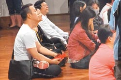 法会结束前,曹宇文拿随喜红包与璩美凤送给法师,她神情兴奋,不断露出天真甜美的招牌笑容。