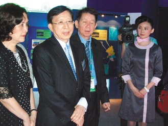 刘兆玄世博之旅的第一站选在台湾馆,昨天下午在王志刚陪同下参观,他直叹台湾馆“百闻不如一见”,超出他的想象。刘兆玄并在台湾馆的点灯水台点了一个电子天灯。