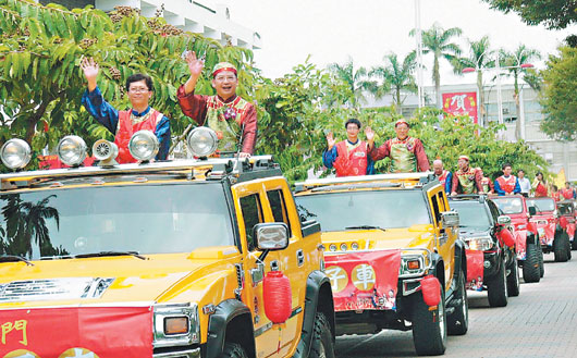 中新网10月12日电 据台湾《联合报》报道,台湾50名博士、高考及格者,11日喜孜孜地披挂状元彩带参加苗栗市古礼“士子开中门”活动,并乘车游街,小朋友看了羡慕、问个不停,“将来我们也要这样光宗耀祖”。