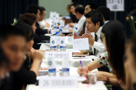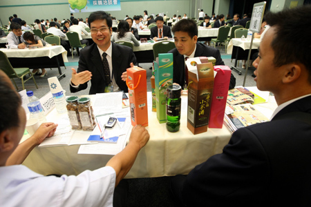 中新网7月13日电 据“中央社”报道,大陆海贸会办理“两岸经贸促进考察团”第二团13日在台北国际会议中心举行洽谈会,两岸商家将进行数百场一对一的面谈。
