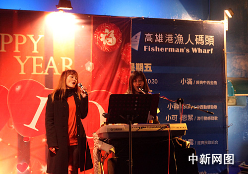 虎年春节将至,高雄市渔人码头街头艺人迎春表演。 者:陈立宇