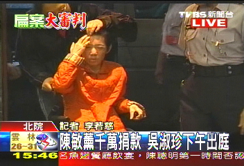 中新网6月16日电 综合台湾媒体报道,陈水扁夫人吴淑珍与马永成十五日在法庭上对质,两人对二○○五年县市长选举时,中信金前副懂事长辜仲谅到底捐多少钱给参选台北县长的罗文嘉,说法不一。吴淑珍说辜仲谅另外给罗文嘉两千五百万元,马永成则说,辜仲谅在他特别拜托下,在全部捐款中,指定一千五百万元给罗文嘉。