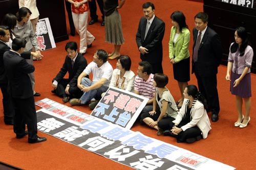 民进党团的阻挠行为导致议事延误逾一小时。近中午时,虽然吴敦义顺利上台,但在蓝绿“立委”的双重人墙包围下,仅报告约10分钟即结束。在随后的总质询中,吴敦义接任“行政院长”前的香港之行,成为民进党“立委”质疑焦点。