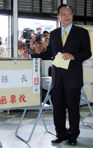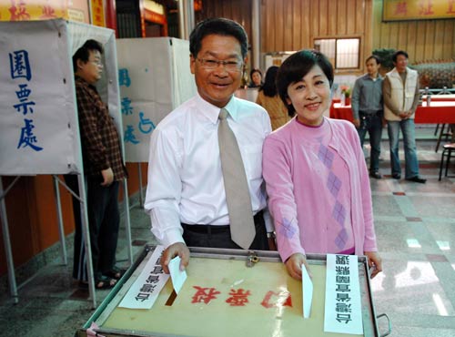 中新网12月5日电 台湾县市长选举今天(5日)投票,在蓝绿阵营争夺激烈的“超级战区”宜兰县,国民党参选人、现任县长吕国华和民进党参选人林聪贤不约而同都选在上午9时左右前往投票。