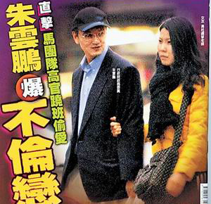 朱云鹏担任“政务委员”期间,主导两岸、经贸政策,深受马英九当局倚重。去年4月却遭周刊踢爆,在上班时间和小他26岁的黄姓钢琴老师到嘉义、高雄等地甜蜜出游,恋情因而曝光.但因政务官上班时间出游,引发争议,朱也在恋情曝光后请辞获准,目前回到大学任教。