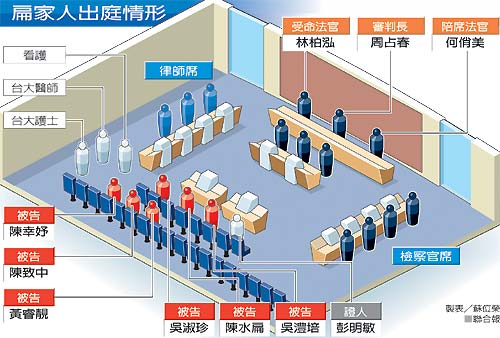 中新网5月11日电 据台湾《联合报》报道,陈水扁被控“二次金改”弊案,台北地方法院10日开庭审理,这是扁案爆发以来,扁家成员首次在法庭上大团圆,陈水扁和妻子吴淑珍坐在被告席上,交头接耳,窃窃私语,吴淑珍的精神很好,连每隔半小时例行测血压都省了。