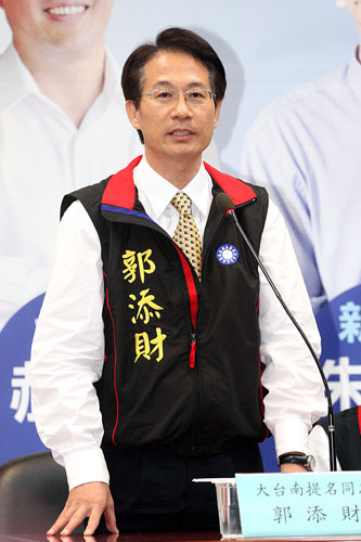 中新网6月4日电 据“中央社”报道,国民党大台南市长参选人郭添财今天先后拜会台南县议会国民党团及新营市长李宗智。郭添财说,各界的指教他都会虚心接受,并配合勤走基层,拉抬选情。