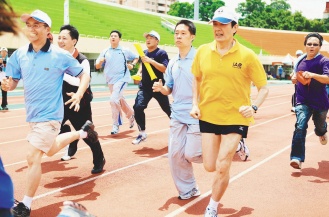 据悉,中国国民党青工总会20日在高雄县立体育场举行运动嘉年华会,马英九以党主席身份与会,喜爱运动的他表示,养成运动习惯只须克服一个“懒”字。接着,马英九带头跑运动场一周400米,为鼓励大家快跑,只要在两分钟内跑完400米,就有2000元奖金。