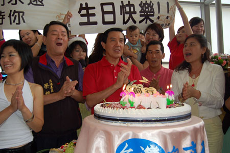 中新网7月13日电 国民党二00八参选人马英九今天中午在台中市度过自己的五十七岁生日,并在众人的歌声中许下心愿:希望壮大台湾、结合两岸、布局全球。