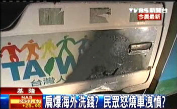 中新网8月15日电 就在陈水扁海外账户曝光的敏感时刻,15日凌晨,上届民进党“大选”候选人长昌配的宣传车突然遭人纵火,引起当地警方重视。
