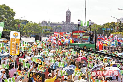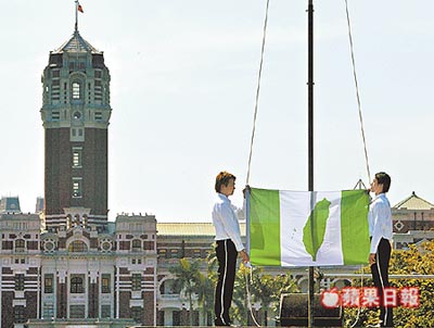 台湾《苹果日报》9日报道,台湾“独派”团体“9.08台湾国”联盟昨天在台北市凯达格兰大道上举行升“台湾国旗”闹剧,并由“台湾公民社”秘书长廖林丽玲宣读所谓的“台湾国宣言”,叫嚣终结“中华民国体制”,迈向“台湾建国”之路。