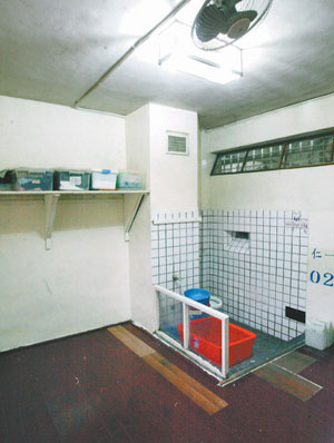 一坪多的舍房,陈水扁吃喝拉撒都在里面,睡觉得打地铺,只有电风扇。图片来源:台湾《联合报》
