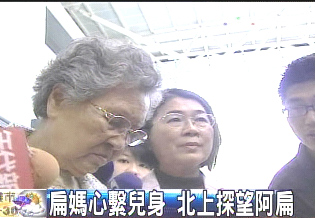 这是扁母第一次要到看守所探望陈水扁,并没有携带任何东西。面对媒体询问,她不发一语,只紧紧握着大女儿的手。