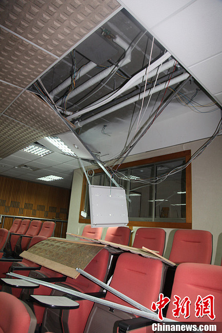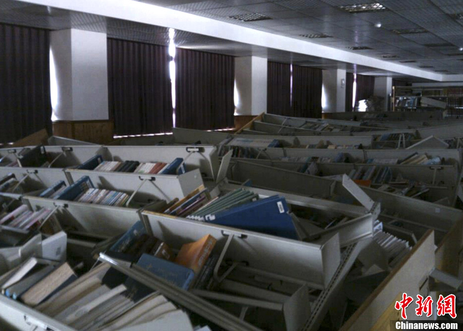 南投县大地震 一高中书架如骨牌瞬间连环倒(图)