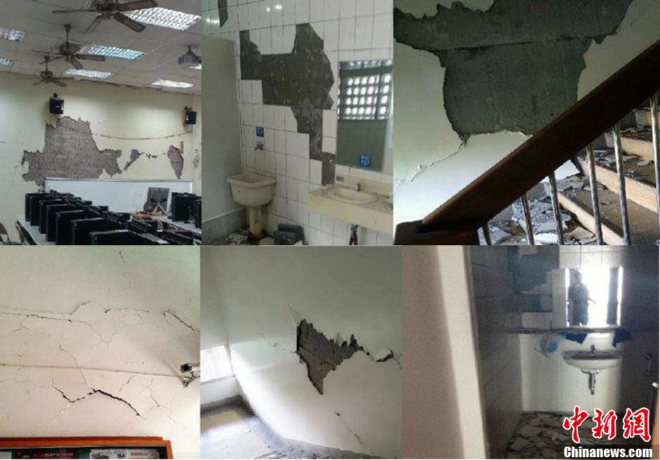 台湾南投发生6级以上地震 当地大学墙体多处破损