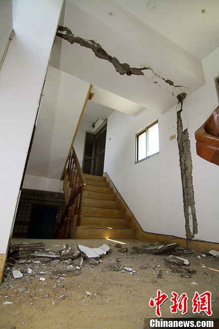 南投县6.1级强震 一高楼外墙屋顶裂到地面