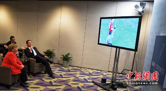 默克尔是一位著名的球迷领导人,德国队上一场与英格兰队的比赛时,当时正在加拿大参加G20领导人峰会的默克尔就忙里抽闲,和英国首相卡梅伦一起观看了这场比赛。比赛中裁判的一个判罚引发争议,不过德国队最终4比1大胜英格兰队。