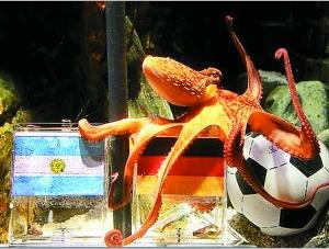 谁能比世纪乌鸦嘴贝利预测得更“准”?你能想像一只来自德国的章鱼向他发起挑战吗?这只神奇的章鱼名叫保罗,来自奥堡豪森的一家水族馆,专门预测德国队的比赛,已经连续四场预测正确,网友亲切地把它称为“章鱼哥”。