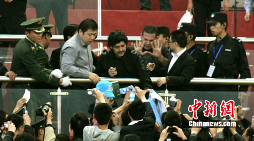 马拉多纳亮相济南 未秀球技仍“引爆”全场(图)(4)