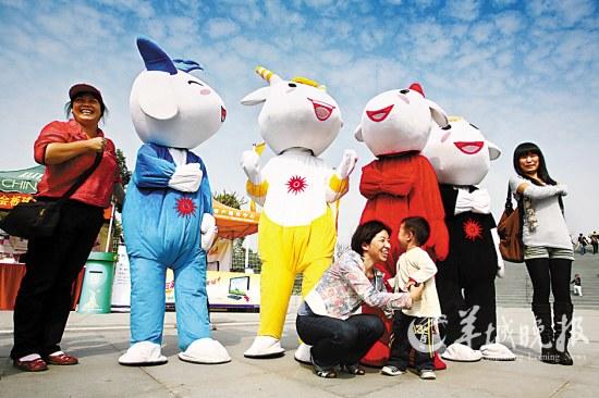 市民很喜爱亚运吉祥物 羊城晚报记者 陈文笔 摄