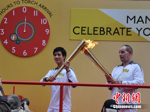 白岩松王力宏在曼城传递伦敦奥运火炬(组图)