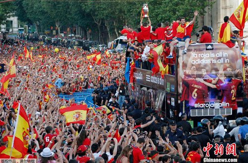 西班牙夺冠全城游行 马德里全城成红色海洋(图)(2)