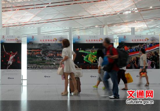 中新网7月27日电 7月27日,在2012年伦敦奥运会开幕前一天,文化部外联局联合北京奥运城市发展促进会在首都国际机场举办主题为《从北京到伦敦》的摄影展览。