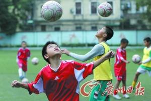 六年级男生侯煜在场上奔跑、拼抢,父亲侯先生站在场边注视着儿子训练。“一开始不是特意送他来练球的。是因为我们住在番禺洛溪,进广州怕堵车嘛,就早一点送他到学校。但是7时就到了学校,也没什么其他的事情好做。正好学校搞足球训练,儿子自己也有点兴趣,就跟着一起练了。”侯先生说,自己没指望儿子练出什么水平,没想到侯煜不久就显示出了出色的天分,成为校队的主力队员。他还有一个“绝技”,就是颠球。