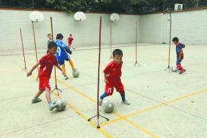 冬至日,下午4时,后乐园街小学放学了。有一批男孩子却没有走出校门:他们有的抱着足球来到操场,练习足弓踢球、带球饶杆等基本动作;有的在老师的带领下做起热身运动。这样的情景,几乎天天都在后乐园街小学上演。每天训练的时段是两个:早上7时30分至8时15分,练身体素质、基本功;下午放学后的一个半至两个小时,训练技战术及实战对抗。