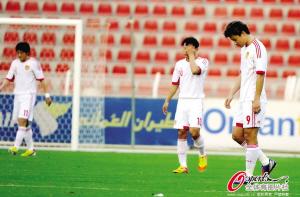 下半场,国足进攻依然没有起色,第71分钟阿曼队队员在中国队禁区内强行突破,刘建业在防守中不慎将对手绊倒,尽管这是一个犯规,但是主裁判并没有判罚点球,中国队再逃一劫。最终,国足0:1不敌对手,无奈吞下4连败的苦果,亚预赛前出师不利。