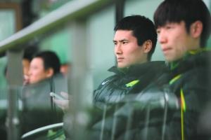 在昨天的热身赛中,邵佳一(右二)等主力作壁上观。