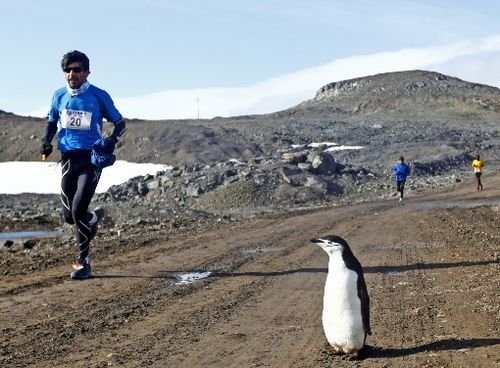 南极洲马拉松现特殊观众 萌企鹅与选手互动(图)(3)