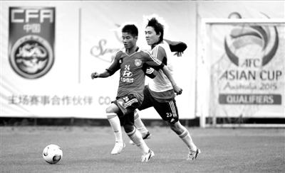 刘建业、冯潇霆、杨旭因为伤病没有参加昨天上午的合练,国足在训练中只能打起10对10对抗。对抗前段,身穿绿背心的主力人选仍是卡家军此前重用的大部分队员,惟一的不同是首次入选择国足的孙可出现在了右前卫的位置上。从表现来看,孙可并没完全发挥出在俱乐部的上佳状态,但卡马乔对这位小将还是分外看重。