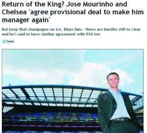 《镜报》称,如果切尔西能够顺利地拿到一张参加下赛季欧冠联赛的门票,那么穆里尼奥离开皇马之后唯一的选择就只有切尔西。此外《镜报》同时透露,穆里尼奥的到来还将引发切尔西高层的另一场权力变革,鉴于目前切尔西俱乐部的技术主管迈克尔·埃梅纳洛和CEO古尔雷都握有实权,穆帅的到来必定还将与这三人进行一场新的权力划分。