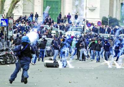 小图为罗马城德比赛前就爆发严重的骚乱。