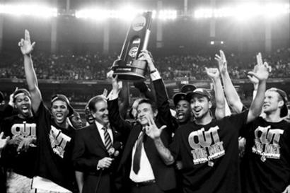 路易斯维尔大学获得NCAA冠军 主帅庆祝碰杯(图)