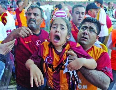土耳其联赛发生球迷骚乱 催泪瓦斯熏哭孩子(图)