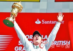 本报讯 (记者 黄越滔) F1英国站昨晚在银石赛道进行。在经历了汉密尔顿、马萨、佩雷兹等4名车手爆胎,维泰尔在领先情况下因变速箱故障退赛后,罗斯博格、韦伯和阿隆索幸运地分享了前三名。