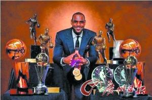 尽管只有28岁,篮球明星勒布朗·詹姆斯已是四届常规赛MVP,两度率队夺取总冠军,荣膺两届总决赛MVP,两夺全明星赛MVP并拿到两届奥运会金牌……美国媒体近日刊登了“小皇帝”和奖杯合影的照片(见上图),可谓霸气外露。