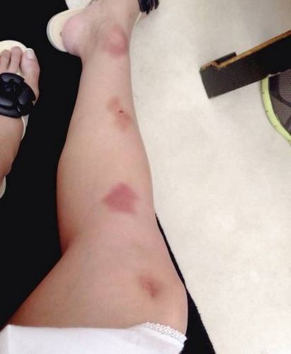 侯佩岑挑战骑驴弄伤腿。图片来源:台湾“苹果日报即时新闻网”