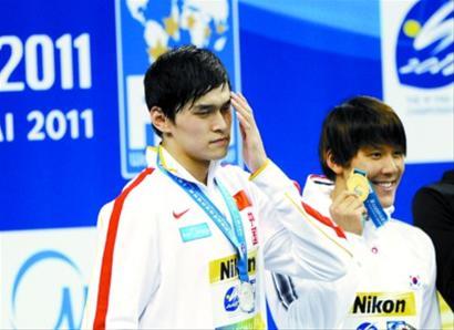 上届的上海世游赛上,孙杨在男子400米自由泳决赛中输给了朴泰桓(右),只拿到银牌 晚报记者 任国强 资料图片