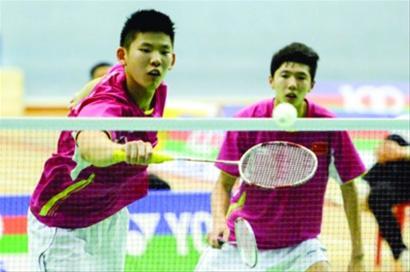 7月10日,羽毛球亚洲19岁以下青年锦标赛,中国队获团体赛冠军。这是中国队选手李俊慧(左)/刘雨辰在男子双打比赛中。