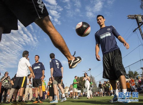 林书豪出席纳什慈善足球赛 场边热身秀颠球(图)(2)