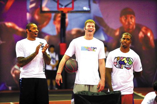 三名NBA明星先来到正佳广场的游乐城与青少年大斗电子竞技游戏,随后又来到西湖路运动城客串店员向幸运球迷提供VIP服务。昨晚8时,三人同时驾临广东青年公园篮球场,参与社区球场翻新计划的启动仪式。在数百名球迷的见证下,经过翻新的球场正式对外开放。随后,安东尼、保罗以及格里芬还与现场球迷进行了互动,并指导来自广东工业大学、广州体育学院、暨南大学和HIM四支队伍的球员进行技巧、三分和灌篮比赛。来到羊城广州的“扣篮王”格里芬显然很幸福,他给球迷秀了一段舞蹈,将本次活动推向高潮。